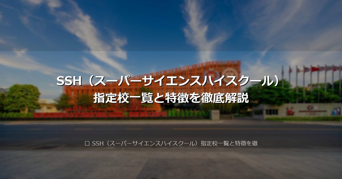 SSH(スーパーサイエンスハイスクール)は、文部科学省が科学技術人材育成を目的として指定する高等学校の制度です。理数系教育の充実と科学技術人材の育成を図る取り組みとして、平成14年度(2002年度)に開始されました。